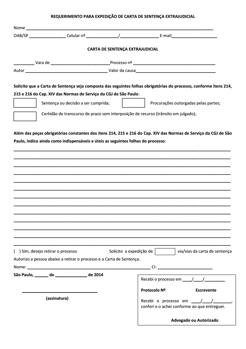 Questão tormentosa é saber se podemos formar carta de sentença de processos de outros Tribunais ou ainda provenientes da Justiça do Trabalho ou da Justiça Federal. Cremos que, se a ordem judicial a ser cumprida se der no Estado de São Paulo, viável a formação da carta de sentença de processo de outro Tribunal, especialmente os cíveis.